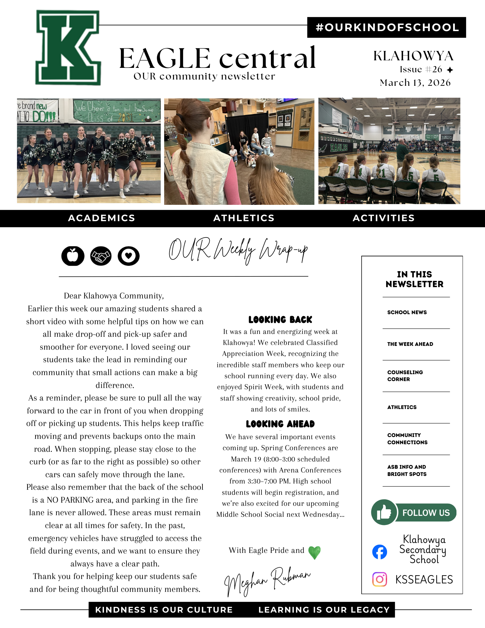 Hello Eagles, Here is another issue of your Eagle Central Community Newsletter. Please open the attached pdf to view the links. Check out all of the awesome events and happenings at Klahowya. Stop ...